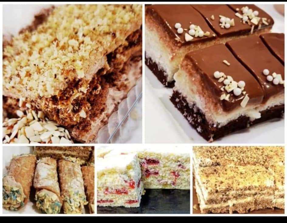 🍰Prajituri asortate – bounty/prajitura cu ciocolata alba si visine/ prăjitura cu nuca si vanilie/prajitura cu ciocolata, bezea cu nuca, caramel si crema de caramel/mini-cannoli- 80 lei /kg