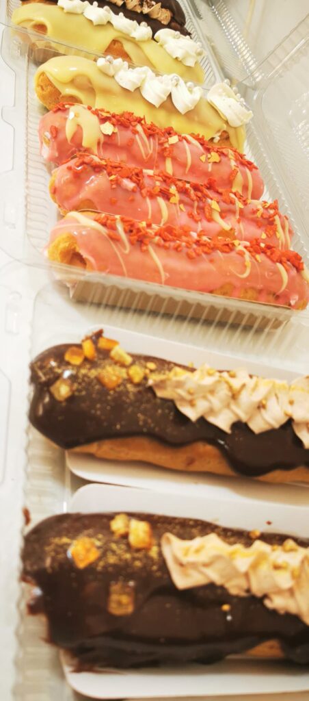 🍰Eclere (ciocolata cu portocale/ fistic/ciocolata alba cu zmeura /vanilie cu stracciatella) – 10 lei/buc