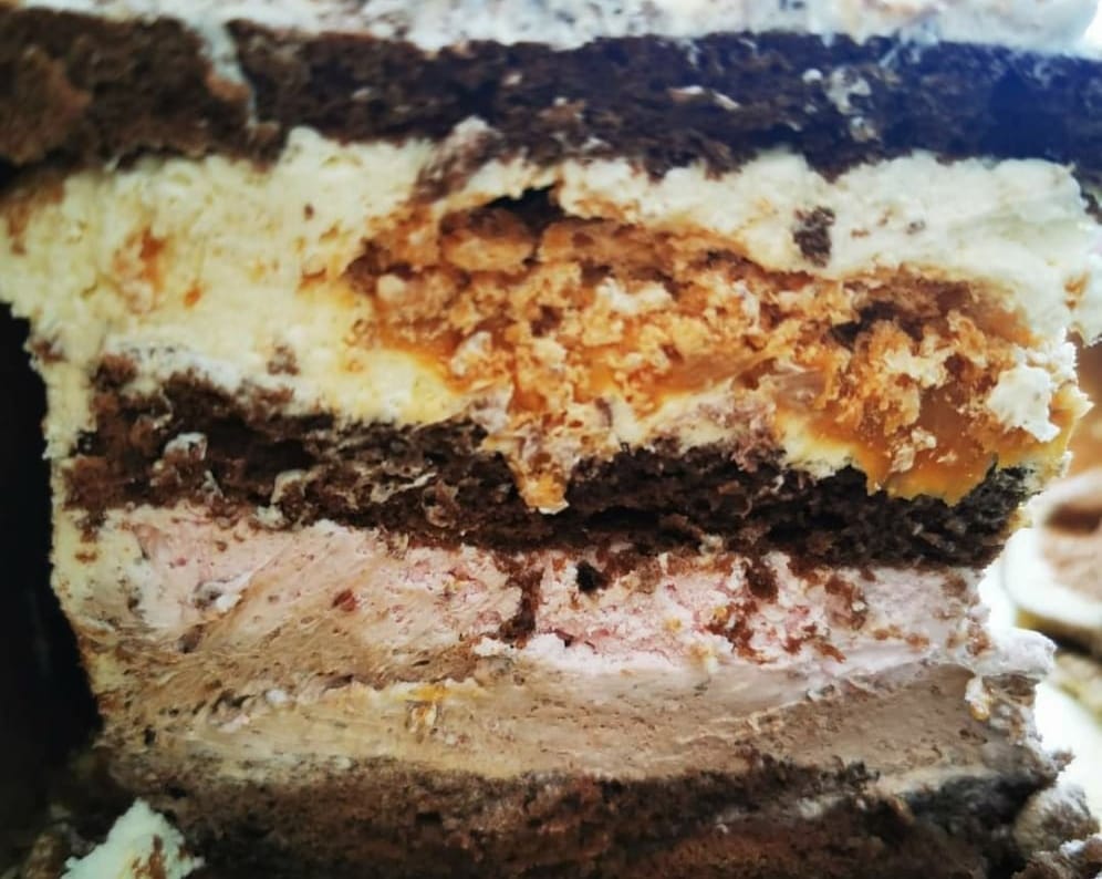 🍰 Tort 4 în 1 (4 sferturi diferite cu compozițiile de mai jos) – un tort cântărește aproximativ 2,5 kg, decorul e unul simplu, preț – 150 lei